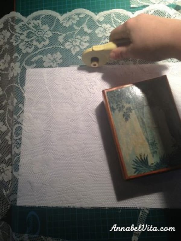 Το καλό με την δαντέλα είναι ότι δεν κάνει φουσκάλες με αέρα και αν κάπου υπάρχει κενό, μπορείτε να το καλύψετε με ένα κομματάκι δαντέλα και κόλλα.