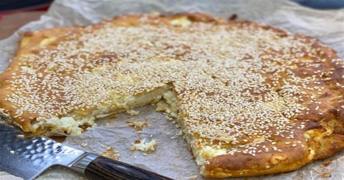 Σουσαμένια παριανή τυρόπιτα από την Αργυρώ Μπαρμπαρίγου με φέτα, γιαούρτι και 1 υλικό έκπληξη