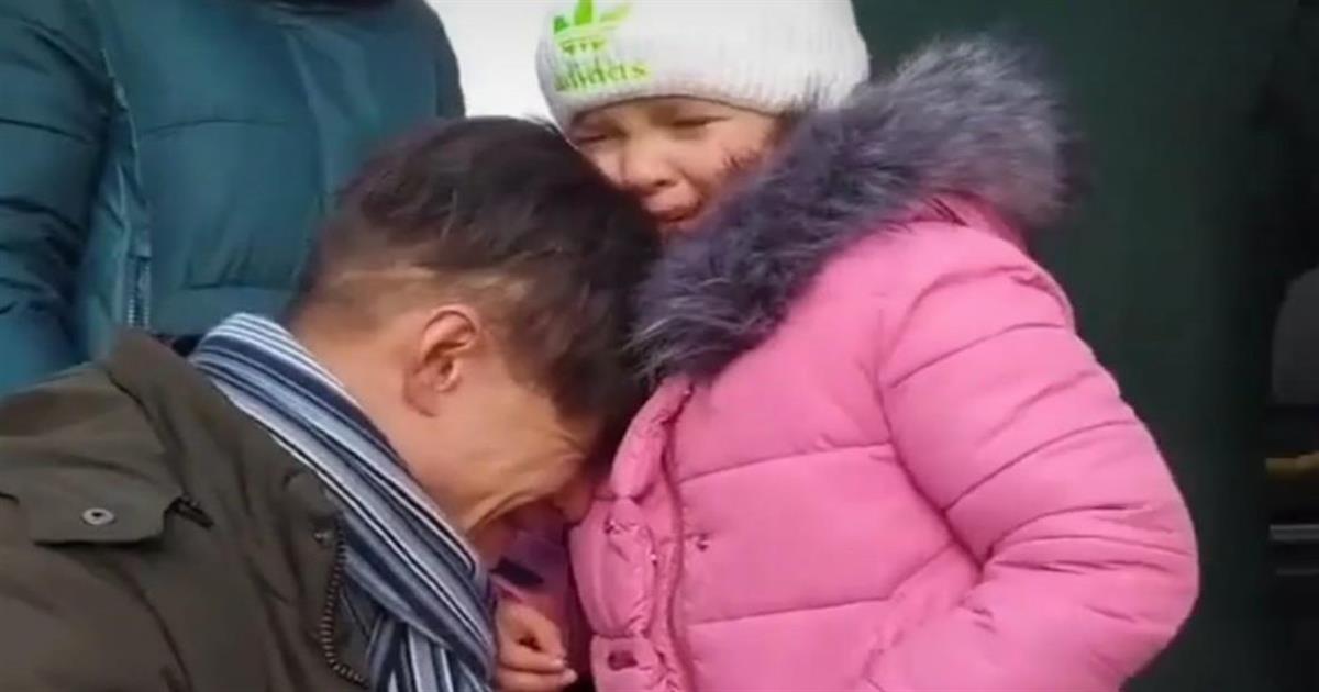 Ένα συγκινητικό βίντεο που σου σφίγγει το στομάχι, κάνει τον γύρο του διαδικτύου αποτυπώνοντας τη σκληρότητα της κατάστασης που επικρατεί. Ένας μπαμπάς αναχωρεί για το μέτωπο και αποχαιρετά την κόρη του, αγκαλιάζοντάς την, ενώ του δίνει ένα γράμμα της για να το πάρει μαζί του στον πόλεμο.