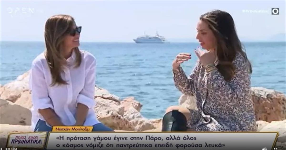 «Η πρόταση γάμου έγινε στην Πάρο αλλά όλοι νόμιζαν ότι παντρεύτηκα, πήρα πάρα πολλά μηνύματα, ευχαριστώ πολύ αλλά μετά το ξεκαθαρίσαμε. Η πρόταση ήταν εντελώς ξαφνική, ήμασταν το μεσημέρι με τους φίλους μας για φαγητό και μετά τον έπιασε να πάμε στο ηλιοβασίλεμα και συγκεκριμένα στον Άγιο Φωκά. Κάποια στιγμή ενώ του μιλούσα, δεν απαντούσε και γυρνάω και είχε γονατίσει, είχε βγάλει το δαχτυλίδι, μου έκανε πρόταση γάμου και εκείνη την ώρα ήρθαν και οι φίλοι μας, ήταν πολύ ωραία», περιέγραψε η Νεσχάν Μουλαζίμ.