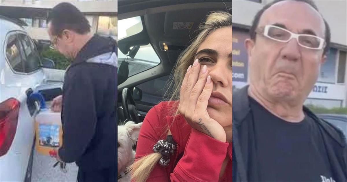 Λίγο αργότερα, ο Λευτέρης Πανταζής, φανερά εκνευρισμένος, έφτασε με μπιτόνι για να βοηθήσει την κόρη του.
