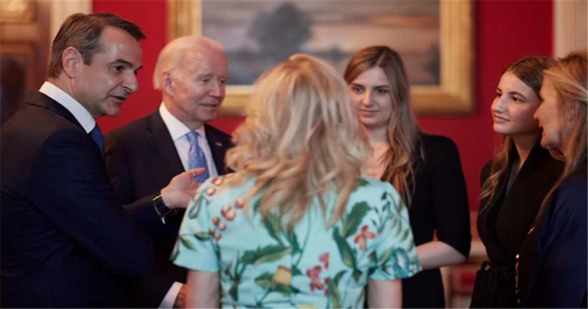 Την ώρα πάντως της συνάντησης του Τζο Μπάιντεν με τον Κυριάκο Μητσοτάκη η Πρώτη Κυρία των ΗΠΑ υποδεχόταν σε άλλο χώρο του Λευκού Οίκου την Μαρέβα Μητσοτάκη την οποία συνόδευαν οι δυο της κόρες, Δάφνη και Σοφία.