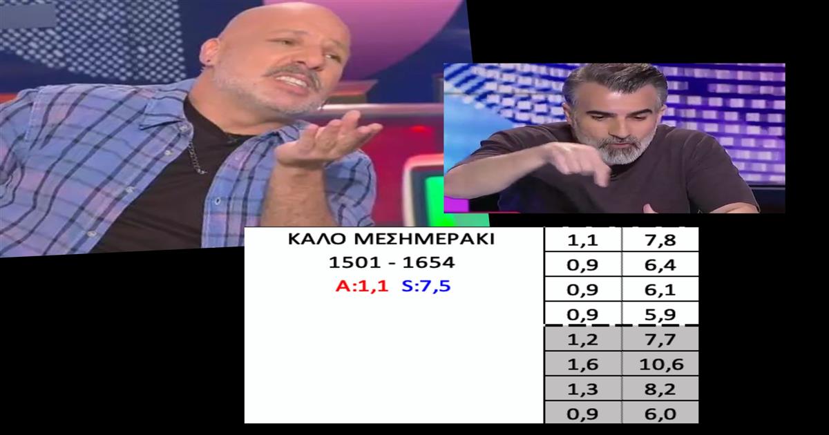 Η εβδομάδα δεν ξεκίνησε καλά για τον Μουτσινά. Την Δευτέρα με το ζόρι έφτασε το 10% σε μέσο όρο ενώ οι επόμενες ημέρες ήταν απλά… τραγικές. Σε καμία στιγμή σε κανένα τέταρτο δεν φάνηκε ανταγωνισ…