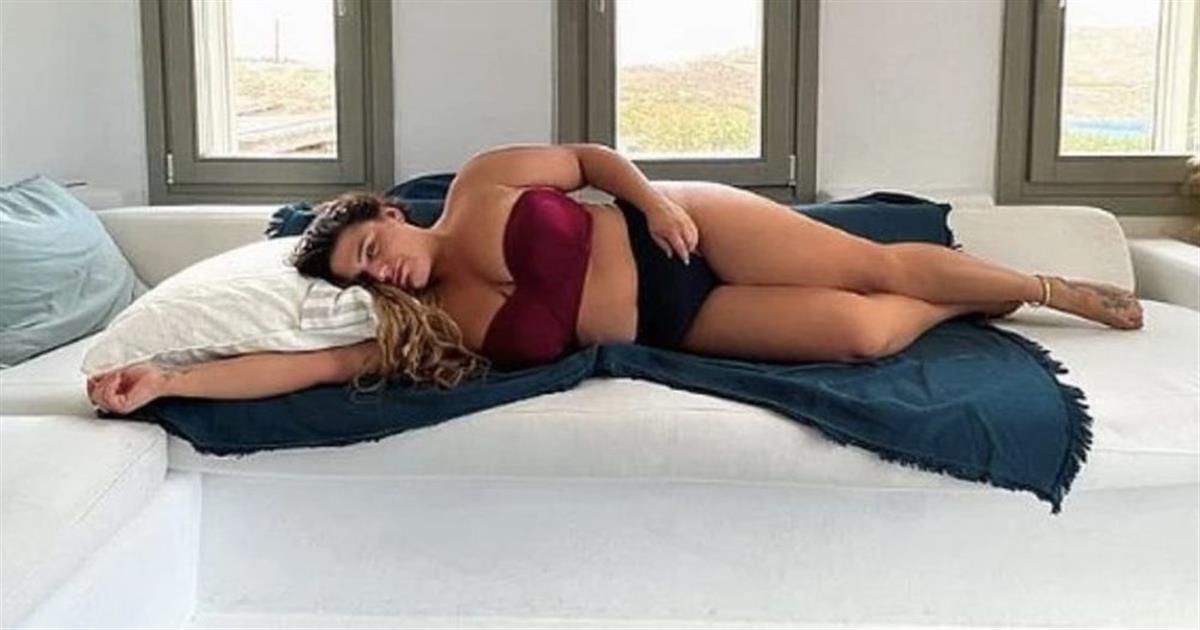 Η Δανάη Μπάρκα απολαμβάνει τη μεσημβρινή ραστώνη ξαπλωμένη στον καναπέ φορώντας μόνο το μαγιό της.