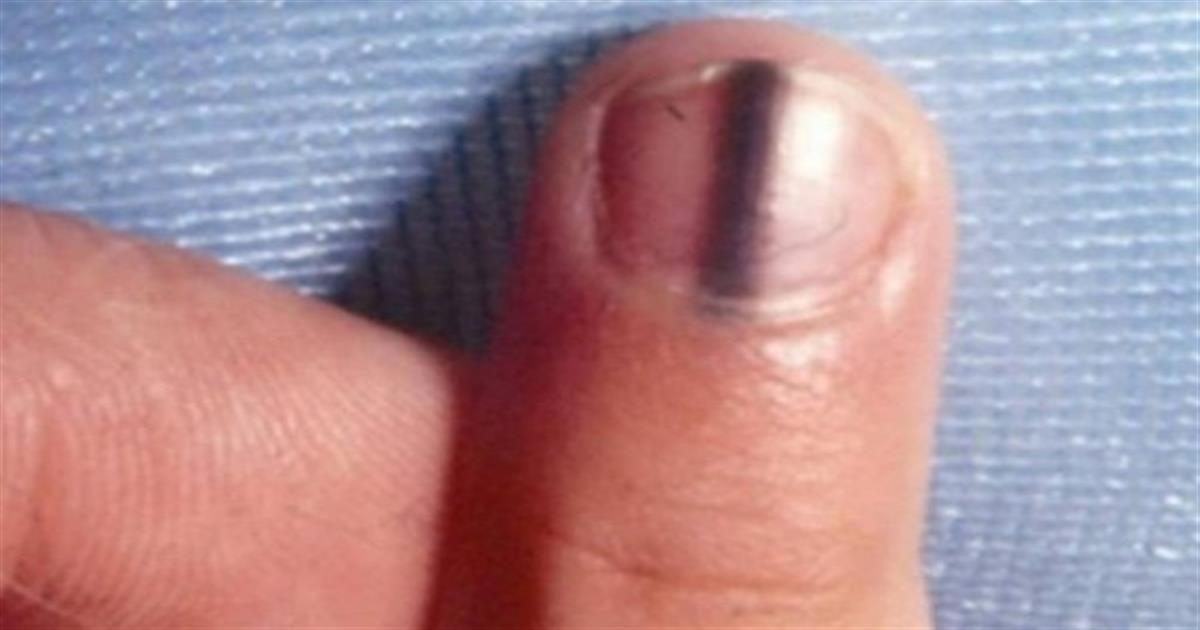 Καρκίνος: Ενώ τα μικρά σημάδια και οι λευκές κηλίδες στα νύχια μας μπορεί να σημαίνουν έλλειψη βιταμινών και πρόβλημα του θυρεοειδούς, αξιοσημείωτες αλλαγές στην περιοχή κάτω από τα νύχια μας μπορεί να δείχνουν κάτι πολύ πιο σοβαρό. Για χρόνια, η Julie είχε μία ανοιχτού χρώματος καφέ γραμμή κατά μήκος σε ένα από τα νύχια της, αλλά η γραμμή τελικά μεγάλωσε σε πιο σκούρα και ευρύτερη στη μέση.