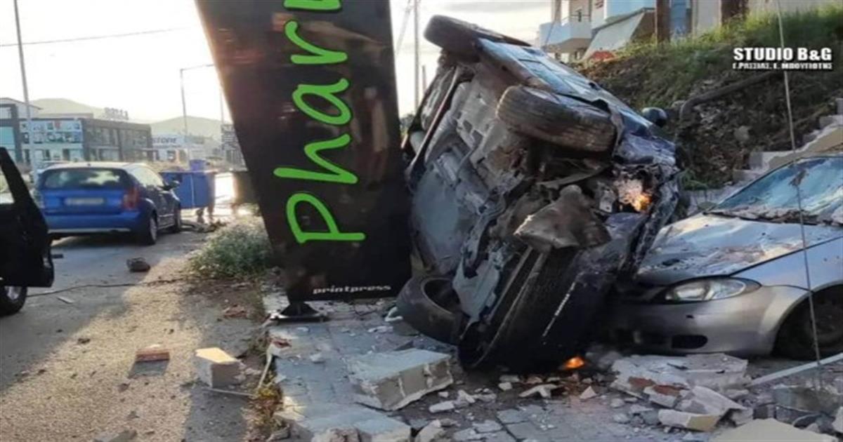 Σοκαριστικό τροχαίο στο Ναύπλιο: Τρελή πορεία ΙΧ – Γκρέμισε μάντρα και έπεσε σε σταθμευμένα οχήματα (Photos)