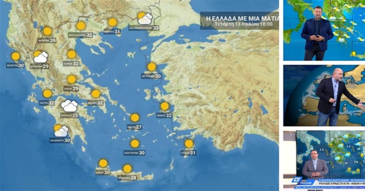 Καιρός σήμερα 13/7: Γενικά αίθριος θα είναι σήμερα Τετάρτη ο καιρός στη χώρα, με την πιθανότητα βροχών, ωστόσο, να είναι μεγάλη σε αρκετές περιοχές ενώ αναμένεται και χαλαζόπτωση, με τους Σάκη Αρναούτογλου, Γιάννη Καλλιάνο και Κλέαρχο Μαρουσάκη να προειδοποιούν για την εξέλιξη των καιρικών φαινομένων. Παράλληλα, δείτε αναλυτικά εδώ τις θερμοκρασίας για τοεπόμενο 10ημερο.