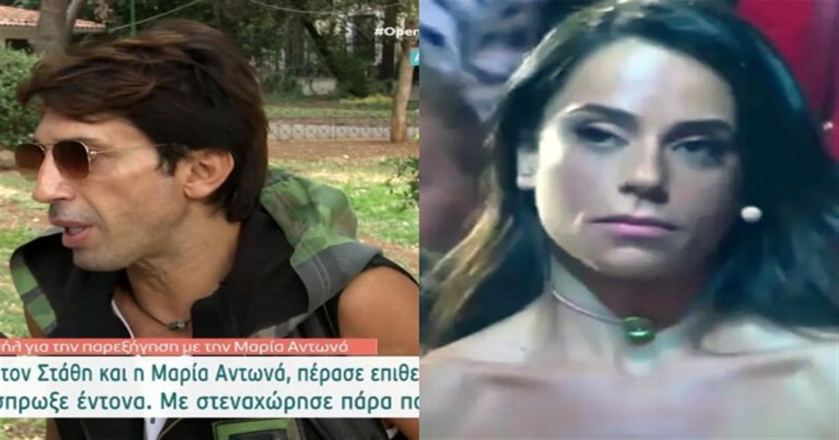 «Τον μεγαλύτερο χαμό στο Survivor τον έκανα εγώ. Έχω αυτογνωσία και είμαι έντονος χαρακτήρας. Πήγα να αγκαλιάσω τον Στάθη και η Μαρία Αντωνά πέρασε επιθετικά από δίπλα μου και με έσπρωξε πάρα πολύ έντονα. Αυτό με ενόχλησε και με στεναχώρησε πάρα πολύ. Δεν έγινε κατά λάθος, δεν είμαι χαζός. Με έσπρωξε επιθετικά για να μου δείξει ότι δεν με βλέπει καν.