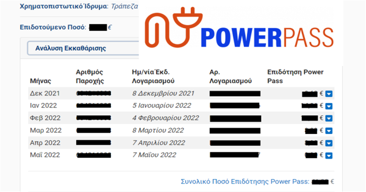 Η επιδότηση Power Pass δίνεται σε όσους είχαν συνολική επιβάρυνση στους λογαριασμούς ρεύματος από την 1η Δεκεμβρίου 2021 έως τις 31 Μαΐου 2022 πάνω από 30 ευρώ με το κράτος να καλύπτει το 60% της αυξημένης κατανάλωσης για κύριες κατοικίες και φοιτητικές μετά την αφαίρεση της κρατικής επιδότησης και των εκπτώσεων από τους παρόχους.