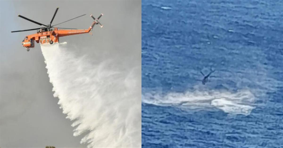 Σύμφωνα με τις πρώτες πληροφορίες, το ελικόπτερο έπεσε τη στιγμή που επιχειρούσε να πάρει νερό από τη θάλασσα, βόρεια του Παλαιοχωρίου.