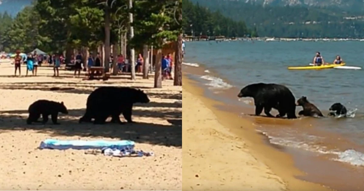 Εικόνες απείρου κάλλους είδαν οι λουόμενοι στη λίμνη Τάχο στη Νεβάδα, όταν μία αρκούδα με τα μωρά της θέλησε να δροσιστεί, γι’ αυτό και μπήκε στα κρύα νερά..