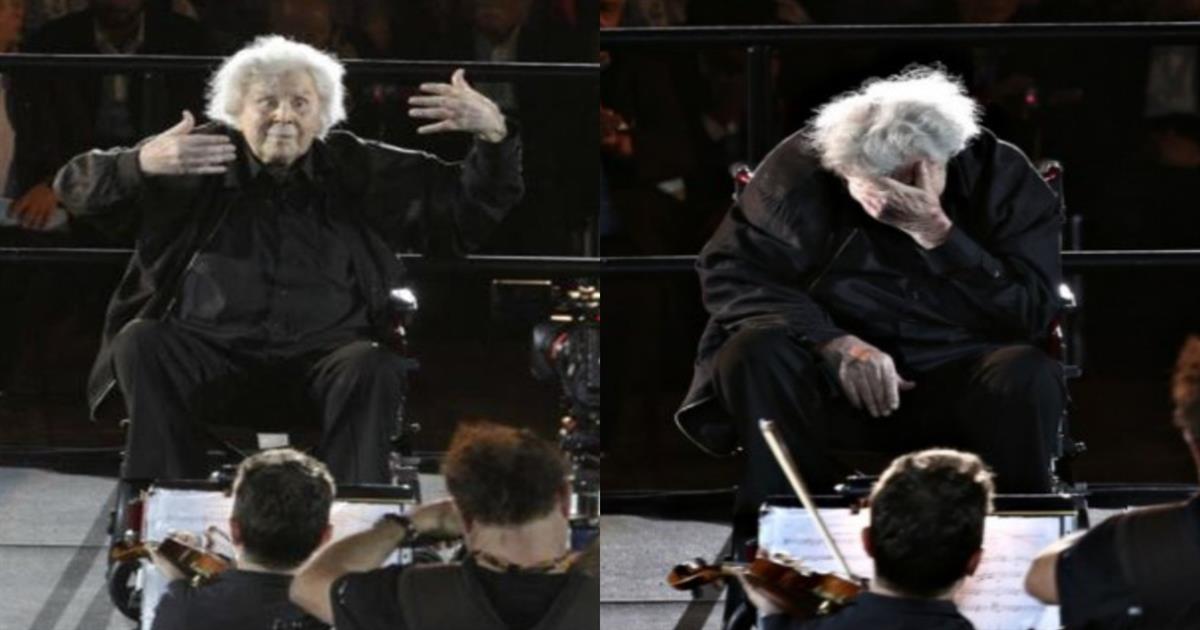Ο συνθέτης έφτασε συγκινημένος σε καροτσάκι και πήρε θέση για τη συναυλία προς τιμή του.