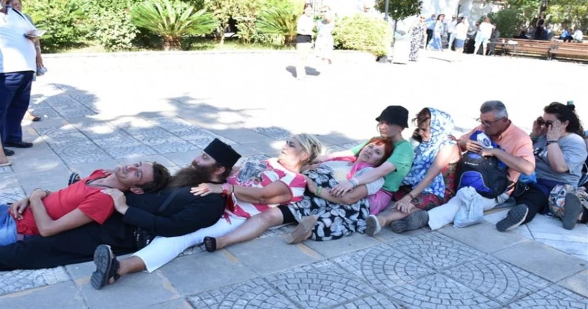 Κατά την διάρκεια της διαδρομής, η λάρνακα του Αγίου πέρασε πάνω από εκατοντάδες πιστούς που είχαν πέσει στο έδαφος.