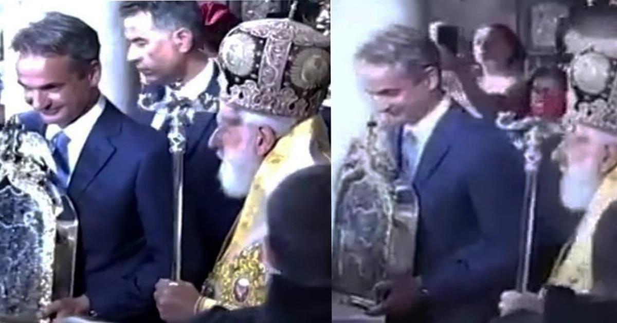 Ο πρωθυπουργός Κυριάκος Μητσοτάκης σήμερα βρέθηκε στην Τήνου όπου μετέφερε για λίγο την εικόνα της Παναγίας.