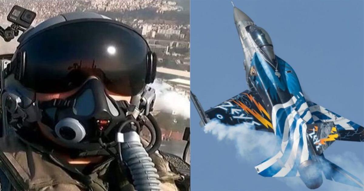 Ο ιπτάμενος της ομάδας ΖΕΥΣ πραγματοποίησε δύσκολους ελιγμούς και χαμηλές διελεύσεις με το F-16, ένα από τα καμάρια της πολεμικής μας αεροπορίας.