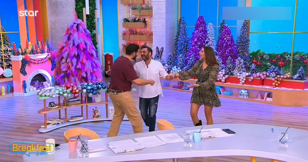 «Ερχόσουν εδώ κάθε μέρα, πώς σου φαίνεται;», ρώτησε ο Ετεοκλής Παύλου. «Λίγο περίεργα, λίγο άγχος», απάντησε ο Γιώργος Καρτελιάς και λίγο αργότερα άρχισαν οι ερωτήσεις για την Ελίνα Παπίλα και τη συνύπαρξή τους στο Breakfast@Star.